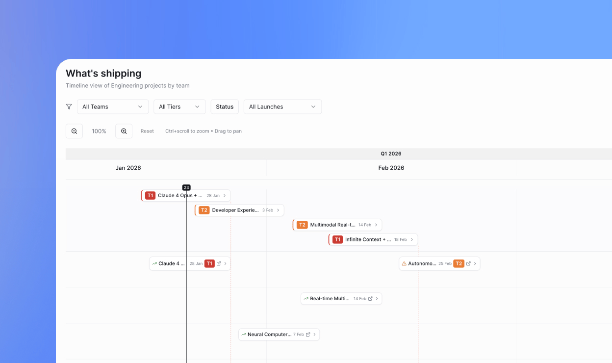 Coordinate timelines, owners, and rollout status in one place so launch execution doesn't fragment across docs, tools, and threads.